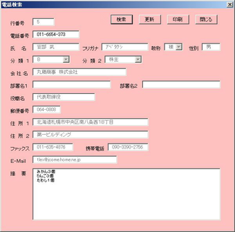 顧客管理名簿には、操作画面上にはヘルプや詳しい操作説明が有りません。シンプルな構成ですので、一度慣れてしまえばヘルプや操作説明を参照する必要はほとんど無くなるでしょう。操作に迷った時は、インストールしたデータの中の各種テキストファイルを参照して下さい。